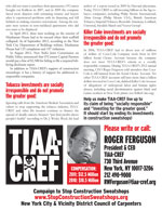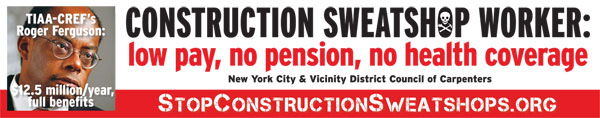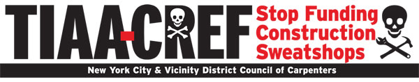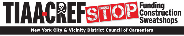 Please contact the organizing department of the NYC District Council of Carpenters to help distribute the TIAA-CREF leaflet, "TIAA-CREF: Construction Sweatshops, Tobacco and Killer Coke" brochure. Contact organizer Michael Donnelly at MDonnelly@nycdistrictcouncil.org.