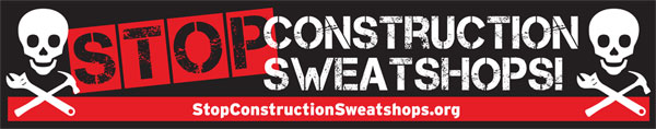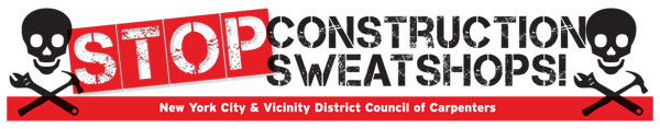 Please contact the organizing department of the NYC District Council of Carpenters to carry our 17 foot banners exposing perpetrators of Construction Sweatshops. Contact organizer Michael Donnelly at MDonnelly@nycdistrictcouncil.org.